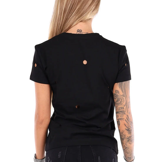 Купити чорну жіночу футболку з принтом NO STRESS від бренду KRUTYAKOV — ідеальне рішення для тих, хто шукає стильні футболки для жінок з оригінальним дизайном. Ця футболка — не просто базовий елемент гардеробу, а справжній акцент образу.