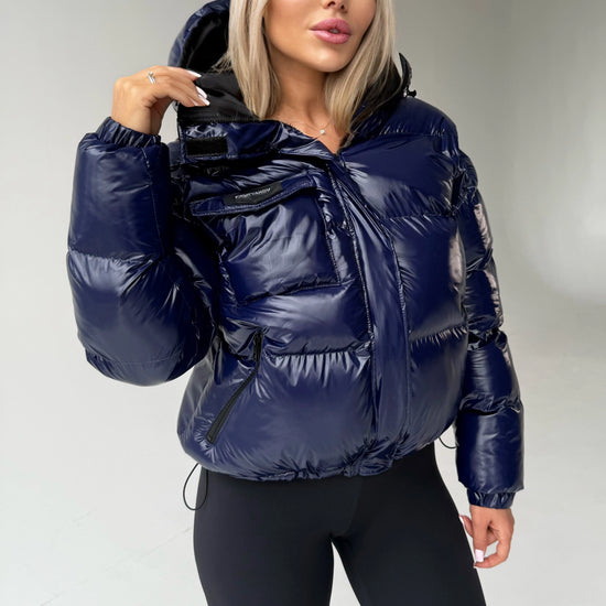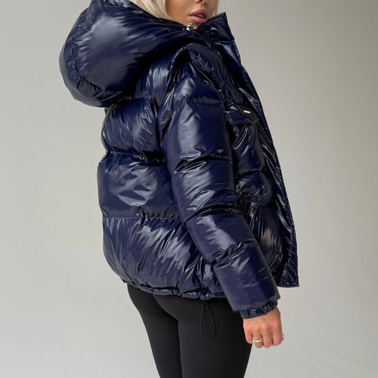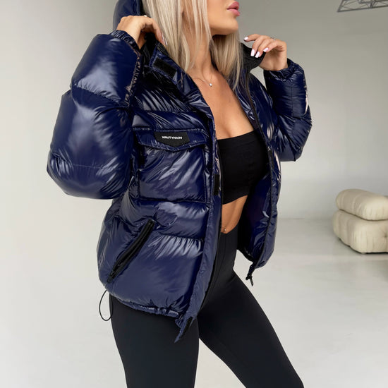 KRUTYAKOV Alpha — жіноча зимова куртка-пуфер у глибокому синьому кольорі для стильних холодів. Модель поєднує сучасний дизайн, практичність і преміальну якість, створена для активного міського життя взимку.