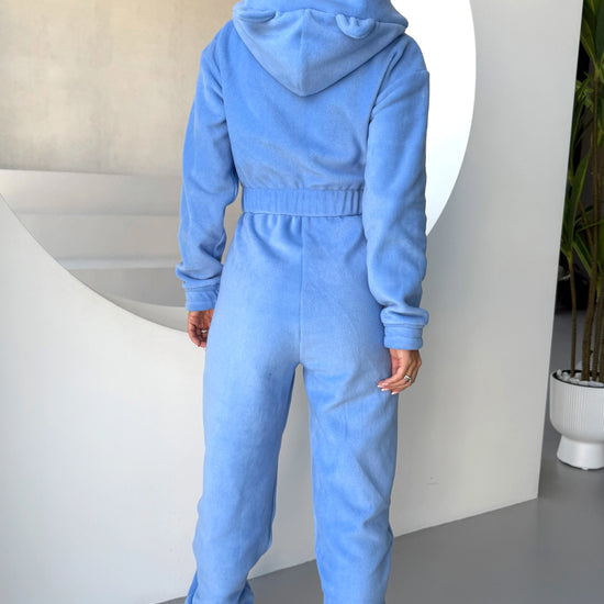 Ніжний блакитний колір підкреслює жіночність, а декоративні вушка на капюшоні — це та сама деталь, яка закохує з першого погляду. Ідеально підходить для прогулянок, поїздок, домашнього релаксу чи фотосесій.
