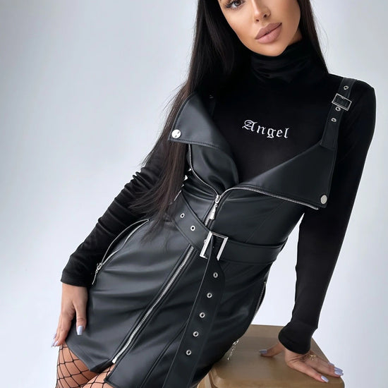 KRUTYAKOV Paola — це стильний жіночий сарафан із сучасним характером. Виконаний із якісної екошкіри, цей сарафан ідеально сідає по фігурі та дарує впевненість у кожному кроці.