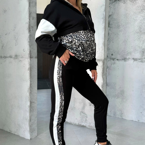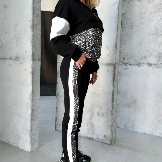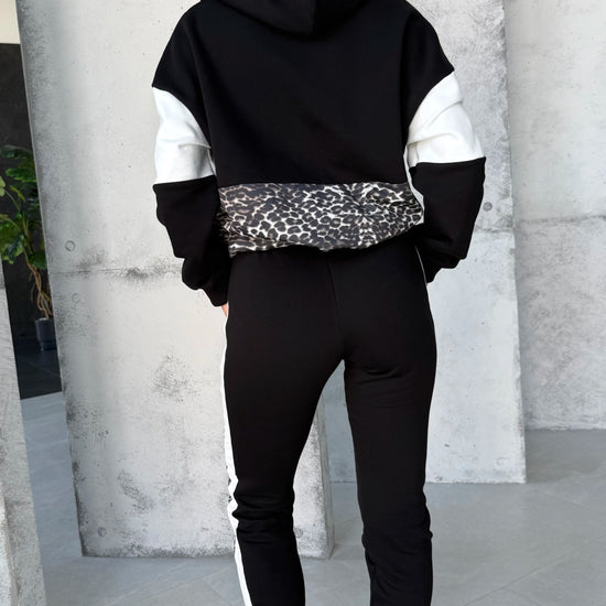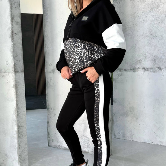Цей костюм — гармонійне поєднання чорного та леопардово-білих акцентів, які додають образу характеру.