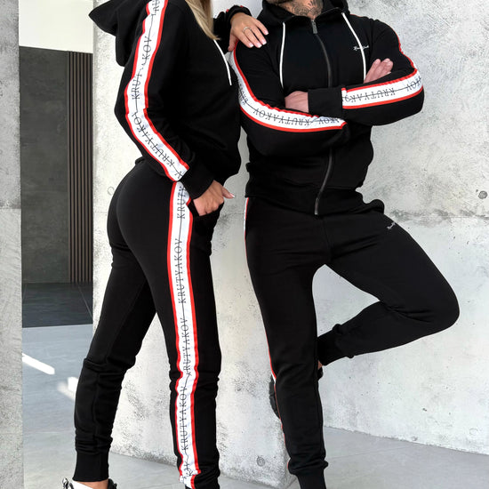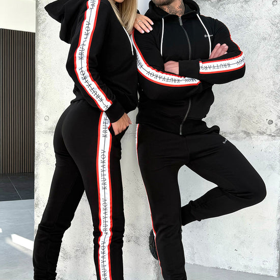 KRUTYAKOV Stripes — це must-have для пар, які обожнюють мінімалізм з характером. Чорний костюм із контрастними червоно-білими лампасами — класика з акцентом 🔥