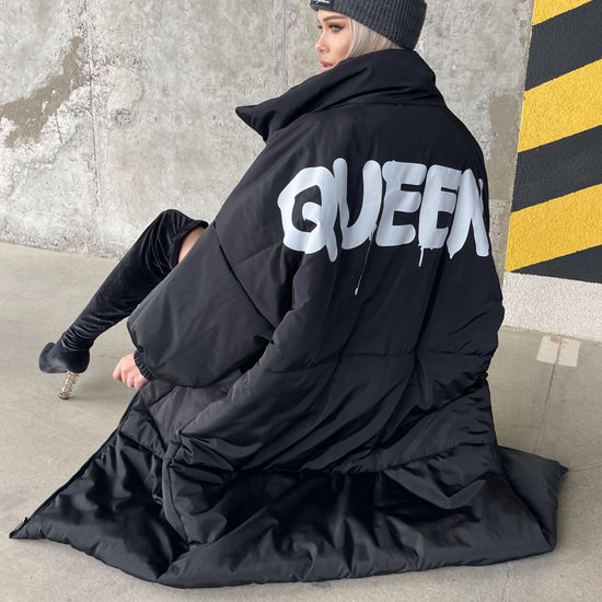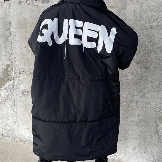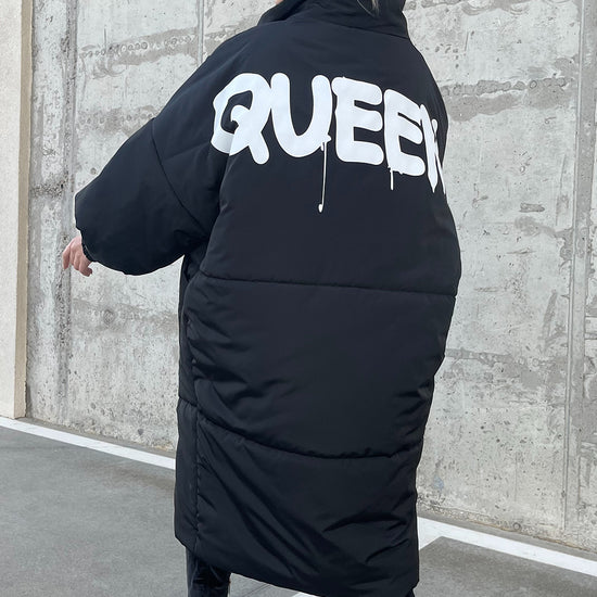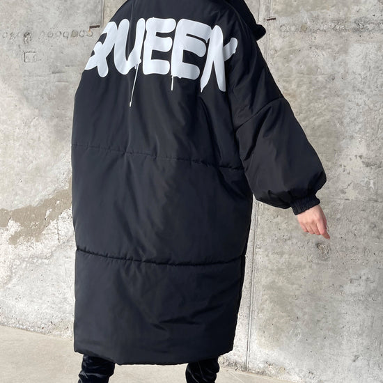 Класичний чорний колір, зручний крій та акцентний принт “QUEEN” на спині — роблять цю модель справжнім мастхевом зимового гардероба.