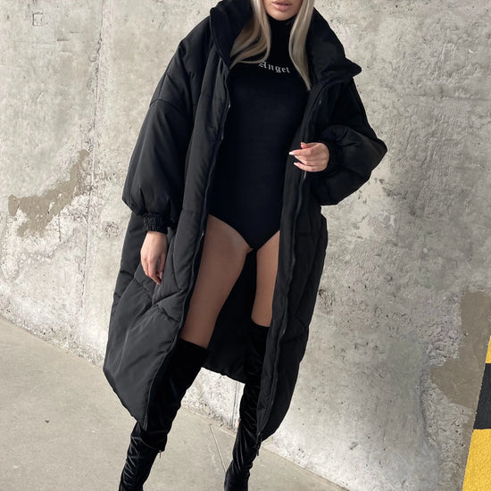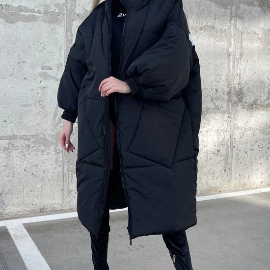 KRUTYAKOV Black Queen — це дизайнерська зимова куртка-пальто в оверсайз форматі, яка вражає своїм мінімалістичним, але ефектним виглядом.