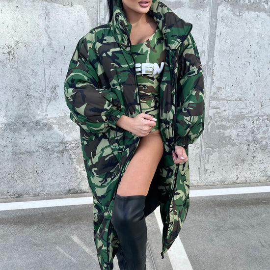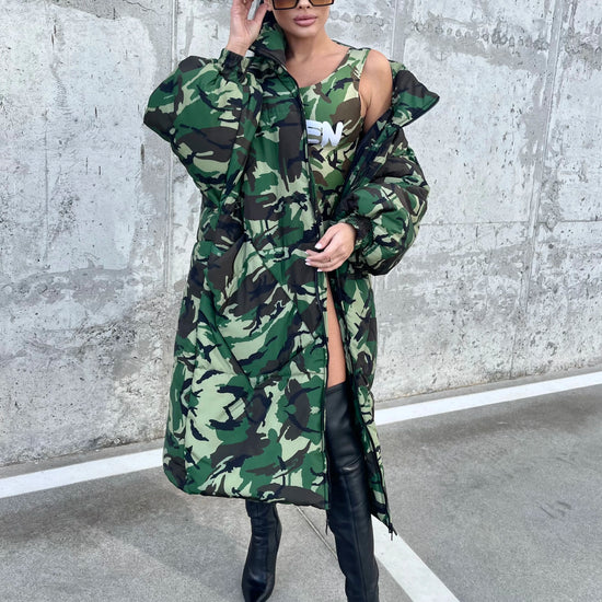 KRUTYAKOV Camo Queen - стильна жіноча зимова куртка у форматі пальта-оверсайз