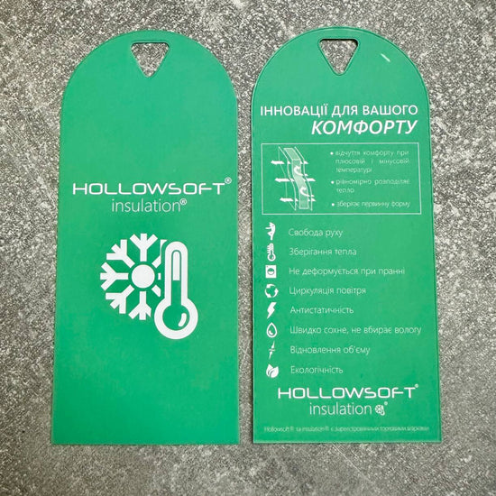 У зимових костюмах і лижних комбінезонах KRUTYAKOV ми використовуємо термальну підкладку з відбивними крапками, яка допомагає зменшувати втрату тепла та утримувати тепло ближче до тіла. Для утеплення застосовуємо Hollowsoft 300 щільністю 300 г/м² — теплий і легкий синтетичний утеплювач, що зберігає об’єм і дає надійний комфорт у холодну погоду без зайвої важкості. У поєднанні ці шари формують продуману “зимову систему” — тепло, комфортно, без надмірного об’єму.
