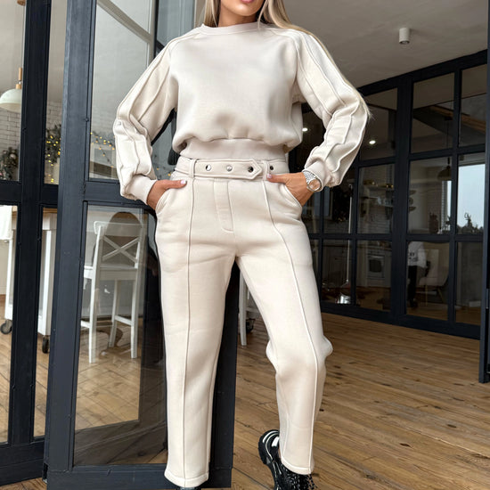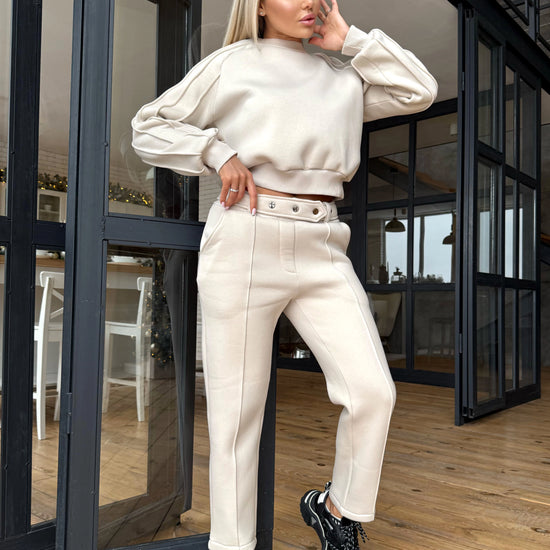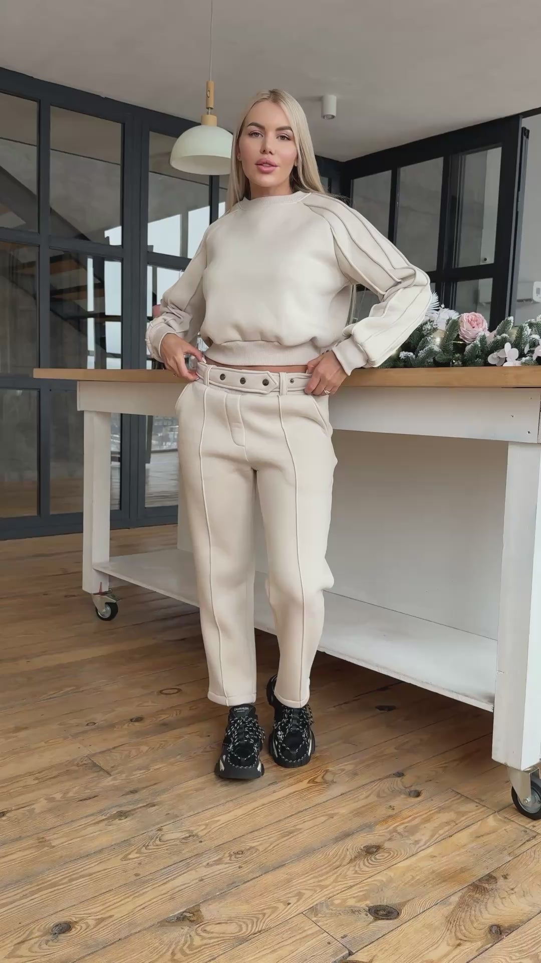 Жіночий спортивний костюм KRUTYAKOV Viola у бежевому кольорі — це сучасний casual-look для міського життя, подорожей і щоденного комфорту. Світлий бежевий відтінок виглядає дорого, мінімалістично та легко поєднується з базовим гардеробом.